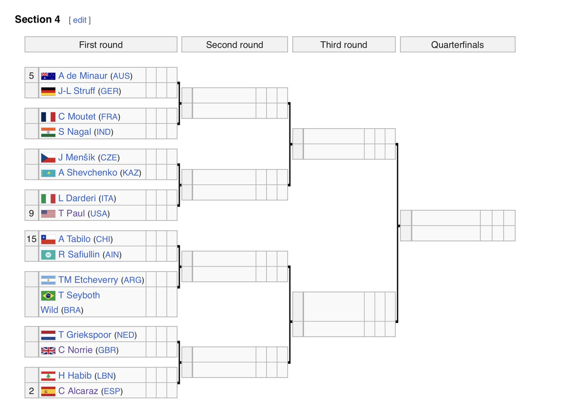 If there are 3/4 players from the same country they will be drawn into different quarters.