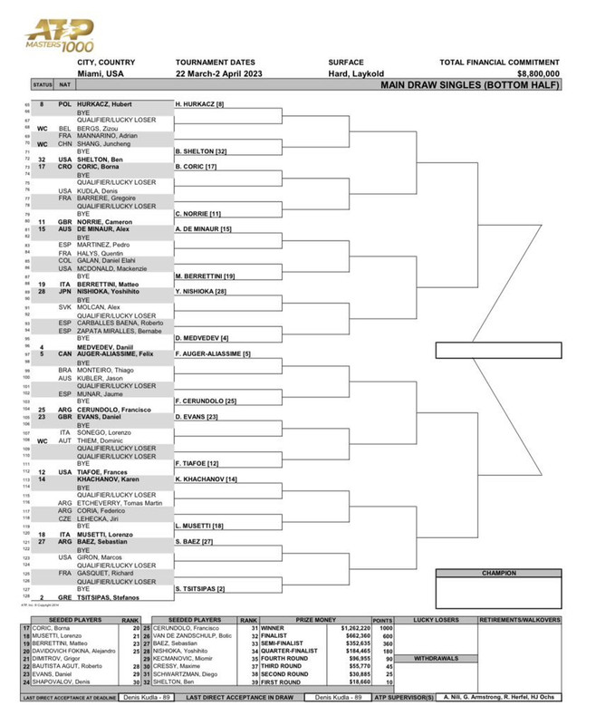 I’ve swapped out Ruud, Rublev and Hurkacz from the 9 poll choices in favour of Tiafoe, Sinner and Zverev given the latter’s results in IW. Just for a change although I’m sure some of you won’t agree with me. Arguably Norrie did better than Rune and Tsitsipas crashed out in R1 of IW.