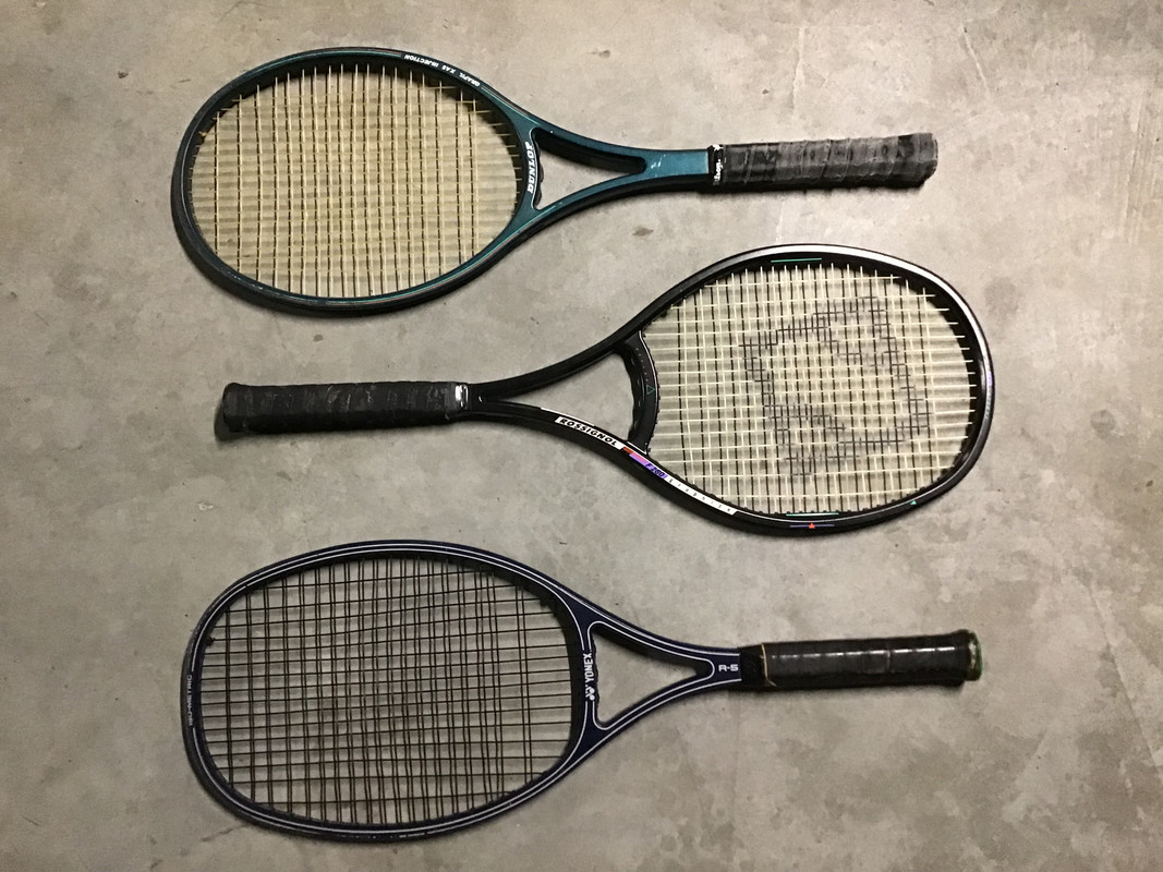 I splurged a bit at PIAS tonight, because for me, I don't find Donnay's everyday. In fact, for some reason, this is the very first Donnay of any kind that I've encountered in my travels in my city. St. Louis is a total Donnay Desert. So I spent $25 to get this 9/10 condition WST Pro Exclusive, which according to the only other post on this website about this frame, is from around 1989-90, this racket had at least one devoted fan on this site. The frame itself is almost completely void of information about it. No tension range, balance, unstrung specs, country of origin, nothing... I have no idea if this was entry level or higher end. I'm assuming mid-range as it doesn't say made in Belgium, as I'm sure they'd mention that if it was.