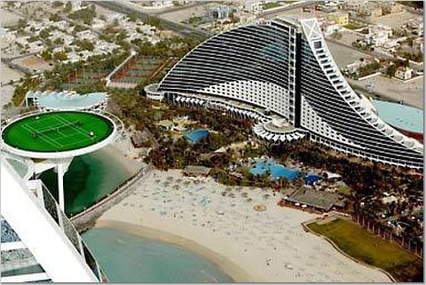 Actually it's not. That's just the heli-pad at the hotel - they laid down a small court on for a promotional spot with Agassi and Fed playing I believe from quite a few years ago.This is an actual tennis court located in Dubai (go figure lol)