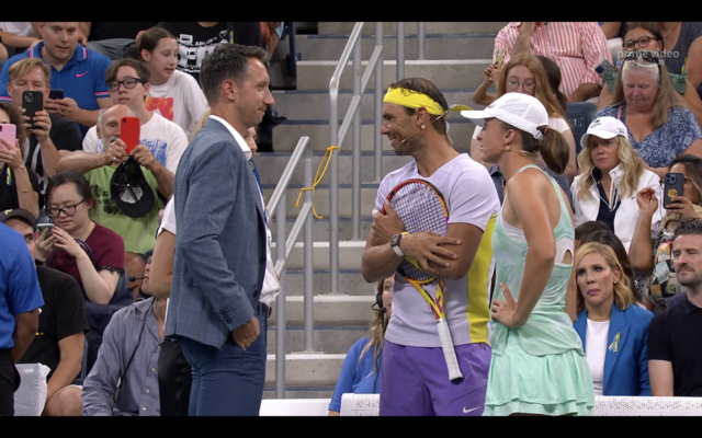 Rafa on playing with Iga... from a Polish reporter [This was not a Tour event, so there were no media obligations. Iga and Coco left right after the game and he was on the way out too but when I asked him to say a few words about @iga_swiatek he stopped and said “oh, easy!” Great champion!]