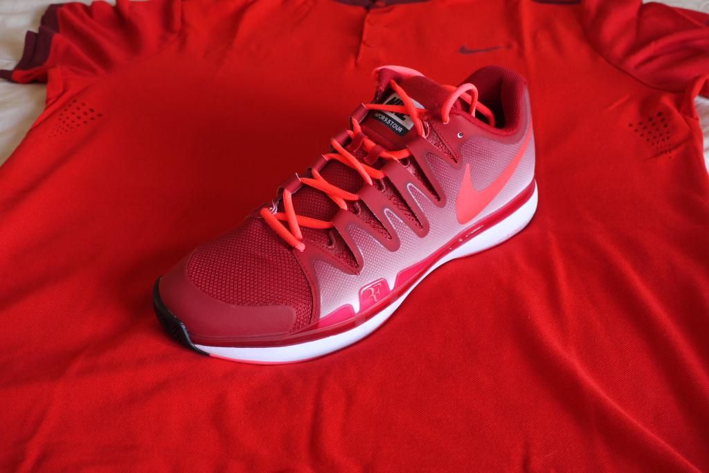 Initial thoughts - The Vapors don't match the shirt as much as they should. The Hyper Punch Nike logo feel like it was left over after the Fall season! The red on the shirt is also quite brighter than the red on the Vapors.