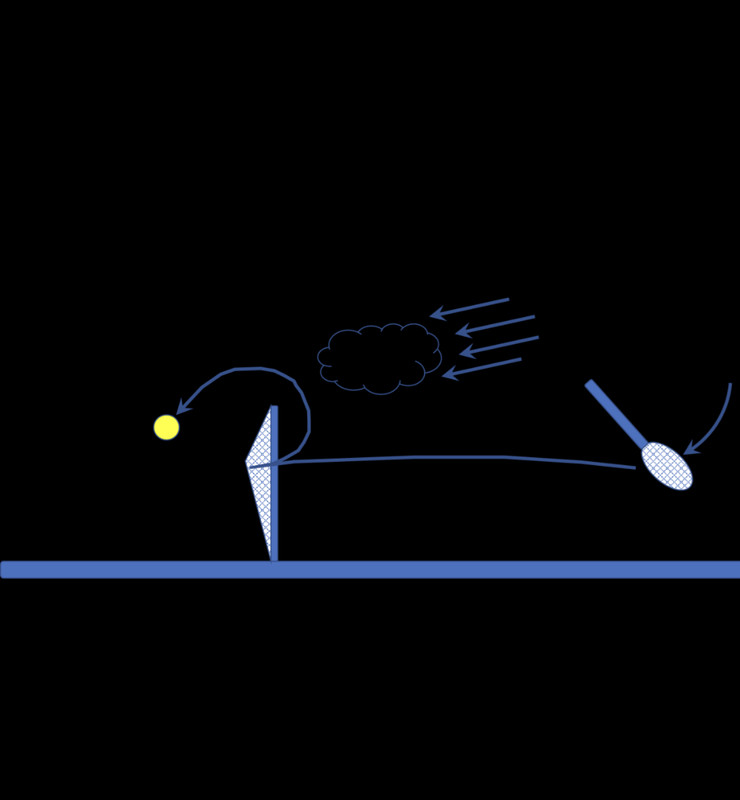 3. It would then have to be INSTANTLY followed (because the ball is now dropping towards below the net at 32 feet per second per second) by an EVEN STRONGER gust of wind in the OPPOSITE direction.