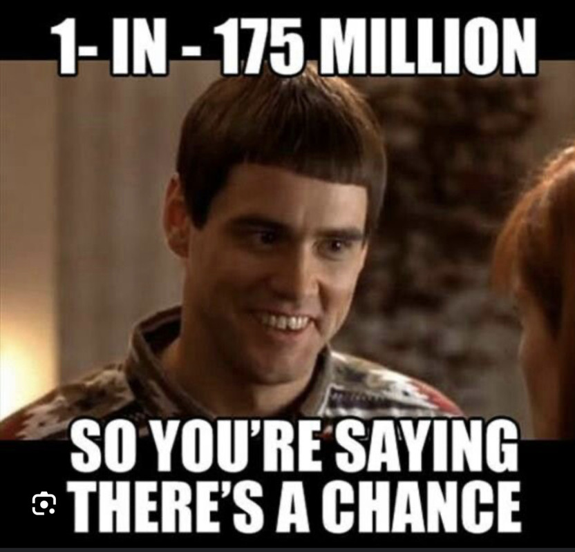 Even Jim Carrey would not say there is a chance. But, I can see it happening to Wile E. Coyote, Super Genius, when using the ACME Industries thermonuclear tennis racket. (btw - I am still receiving treatments from when I restrung this racket)