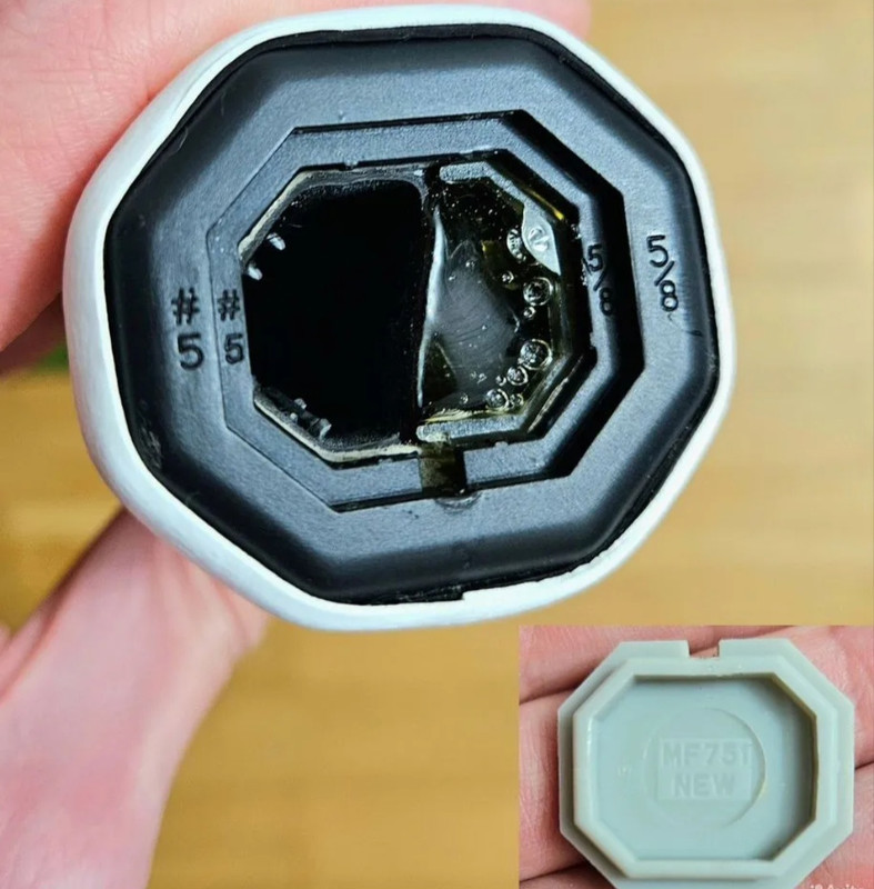 3. We can see Trade Mark (TM) logo after "Blade" in the outside part of the throat and grip size sticker on retail, no of those on her personal.